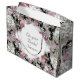 Designbilden har en elegant blomsterarrangemang av blekrosa rosor och vita hortensior runt hela påsen. Fram- och baksidan av designen lämnar en öppning mitt i blommorna för din text som visas i ett silverfärgat bröllopsskrift. Framsidan har bilden av en silverkorsfästelse, i enlighet med det katolska temat. Designad för att samordna med "Elegant katolskt brudskapsfest-kollektion".
