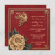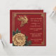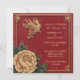 En livfull röd inbjudningskarta dekorerad med invecklad kinesisk stil design. Kortet har eleganta guldfärgade accenter, inklusive traditionella motiv som moln, blommiga mönster och en djärv central emblem som symboliserar välstånd. Kombinationen av rött och guld utstrålar värme och firande, perfekt för festliga tillfällen eller bröllop.