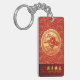 En elegant av en orm i rött med blommar i en cirkel (inspirerad av traditionell kinesisk papper klippning) med en gyllene cirkel som täcker över en röd och gult traditionell asiatisk mönster + grafisk "GOTT NYTT ÅR" på kinesiska och engelska och gammal kinesisk kalligrafi för "orm" på gradiant red färg. Design på rektangulär nyckelkedja med monogram för att anpassa bakåt...