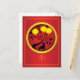 Fira det kinesiska nyåret med en sådan elegant som har en röd bakgrund och en guld-cirkel med guld-lyktor, en träd-siluett och en räv, och ett brev för räv.