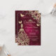 Guldglittrande tiara, klänning, fjärilar och blommor på en röd bakgrund. Bjud in gästerna att delta i firandet av denna milstolpe med en design som speglar magin och glädjen i din quinceañera.