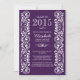 Vackra klass 2015 studenten-inbjudan med en vintage finare-snurrande gräns som ramar in din party-info på lila. Anpassa med din party-info så kommer du alla att åka. Finns i vår butik i en mängd populära färg. Perfekt för flickor studenten, pojkar studenten, högskoleexamen, studenten, studenten eller studenten.