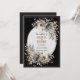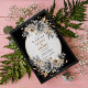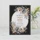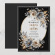 Elegant Klassisk Blommig Rustik Bröllopsinbjudan 5. Denna eleganta bröllopsinbjudan har en tidlös blommig design med mjuka elfenbensvita, guld- och silvergrå toner. Mot en klassisk svart bakgrund inrammar den vackert evenemangsuppgifterna i en sofistikerad kombination av serif- och scripttypsnitt. Perfekt för ett romantiskt trädgårdsbröllop, förmedlar den elegans, värme och firande med förfinad charm.
