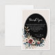 Elegant klassisk blomsterrustik bröllop tack 4. Detta vackert designade eleganta rustika bröllop tack-kort för dina gäster. Har en klassisk svart oval mitten med eleganta blomsterarrangemang i mjuka rosa, kräm och dammiga blå nyanser.