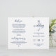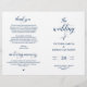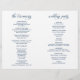 Detta är det vikbara bröllopsprogramkortet, i marinblå elegans klassisk script tema.