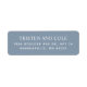 Klassiska returadressetiketter. Vita serif- och sans-serif-teckensnitt på en dammig blå bakgrund. Fäst på den vänstra främre eller bakre fliken på kuvert och små paket.