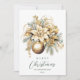 Elegant, klassisk, lyxig juldesign i guld och grönt (mint, ljus teal) med julgransprydnad i guld och blomsterdetaljer i guld.