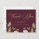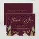 Modern elegant mörk burgunderfärgad merlot och guld bröllopsdusch tackkort med en chic handskriven kalligrafisk skrift med ett litet hjärta och bleknande sagegrön botanisk grönska. +++++++++++ Personliggör det med din text, namn och meddelande på båda sidor! ++++++++++ Observera att bakgrundsfärgen kan ändras för att matcha ditt brölloppsfärgsschema. Om du är bekväm att göra det kan du ändra det efter att du valt alternativet Anpassa. +++++++++ Om du behöver hjälp, vänligen kontakta designern eller använd Zazzles GRATIS Live Designer-tjänst.
