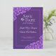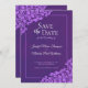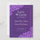 Denna vackra "save the date" för bröllop har en klassisk stil med spetsfiligransmönster och elegant, dekorativ text på en marmorerad bakgrund. Formuleringen är formell och traditionell.
