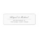 Modern skriptdesign med ett klassiskt par namn, enkel och elegant. Underbarare minalistisk returadressetikett för vintage bröllop, traditionell bröllop, klassisk bröllop och andra evenemang.