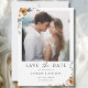 Elegant Koppar & Jordnära Botanisk Cirkelfoto Bröllop Spara Datum-kort. Utskrift & direkt nedladdning tillgänglig. Fördjupa er i naturlig elegans med vår Koppar & Jordnära Botaniska Bröllopsbrevpapper. Denna sofistikerade design fångar värmen och charmen hos ett Boho-inspirerat bröllop, med fantastiska koppar- och brända orange blommor som vackert kompletteras av frodig salvia grön lövverk. Perfekt för par som planerar ett rustikt, modernt eller höstbröllop, denna inbjudan utstrålar tidlös charm. De rena, samtida teckensnitten och det generösa vita utrymmet ger en minimalistisk men ändå förfinad känsla. Oavsett om det är för ett ökenbröllop, en utomhusfirande eller en intim sammankomst, sätter