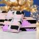 Modern och söt faux ro guld Julgran mönster med rosa och svart rand.