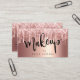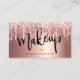 Den här fantastiska affärskortet med konstgjord makeup har faux rosa & koppar ro guld som droppar glitter metallic struktur och elegant calligraphy font.