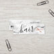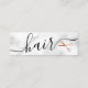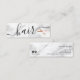 Den här moderna affärskortet med hårstilar har faux kopparsaxar i ro, vit marmorbakgrund och kalligrafteckensnitt i elegant.