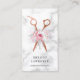Moderna affärskort och eleganter för hårstilister med saxar av typen faux koppar-guld, rosa och vit ros, kalligrafteckensnitt för struktur och elegant.