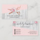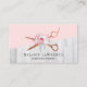 Moderna affärskort och eleganter för hårstilister med saxar av typen faux koppar-guld, rosa och vit ros, kalligrafteckensnitt för trä och struktur för elegant.