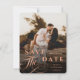Elegant Copper Terracotta Typography med Marble Back och Fullt Bleed Photo Save the Date Card är trendig och soo chic för elegant, med mörk som tonövertäckning för att markera texten och en kalligrafi för Guld parad med ett klassiskt serif-teckensnitt. Anpassa den med ditt fotografi. Fotokort för bröllop spara datum anpassningsbar! ~ Kolla min butik för att se hela sviten för den här designen!