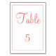 Ett korallfärgat bordskort som är elegant, denna artikel visar en korall och vit design med lättfyllda mallar. Texten kan anpassas liksom färgen på bordskortet och fyrkanten. Personifiera ditt bordskort idag!