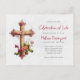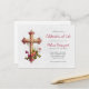Elegant kors med rosa blommor minnesinbjudan vykort