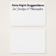 Här är en roligt som kan användas till plocka upp för förlovningsfest- eller samlingsduschen: datumkort för förslag där gäster kan skriva personliga anteckningar till brudgummen och brudgummen. På framsidan läser du "Förslag om datum i natt" i ett fet sans-serif-teckensnitt. Detta teckensnitt är redigerbart så att du kan välja ett annat om du vill.. eller till och med skriva ett annat meddelande. Under finns det en ställe för namn. Dessa visas i ett söt skript som också är enkelt att ändra. Ändra bakgrunden till vilken färg som helst. Tveka inte att nå ut till mig om ni har speciella förfrågningar eller behöver andra saker. Jag är också lycklig för att vid behov hjälpa till med anpassningen av dessa kort. //