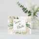Dela de goda nyheterna med familj och vänner när du planerar ditt bröllop och livet framöver. Detta vackra "spara datumet"-bröllopskort. Denna design har en vacker akvarellblomma i kräm och mjuk grön med en fyrkantig guldram. Anpassa alla detaljer och anpassa typsnitt och färger som du vill eller lämna det precis som det är för din bekvämlighet. Blanda och matcha med andra chic-saker i denna exklusiva bröllopssamling.