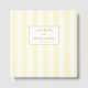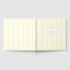 Denna bröllopsgästbok har en minimalistisk och modern design med vertikala krämfärgade och blekgula ränder som skapar en elegant kontrast. Layouten är centrerad runt en liten ram med guldbård som framhäver namnen "Lauren och Benjamin" i klassisk serif-typografi, perfekt för personlig anpassning. Spridda guldfärgade konfettiaccent ger en festlig touch till den sofistikerade estetiken, vilket gör den idealisk för att fira en speciell tillställning som ett bröllop.