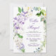 Elegant krans lila blommor bröllopsinbjudan meddelande
