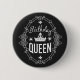 Elegant krona födelsedagsdrottning typografi svart knapp