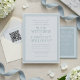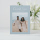 Uttryck din tacksamhet i tidlös stil med detta eleganta kustblå bröllopsflat tackkort. Med förfinad kalligrafi på en blå bakgrund är detta kort det perfekta sättet att tacka gäster, familj eller leverantörer efter din fest. Personifiera med era namn eller meddelande för att skapa en polerad, hjärtlig souvenir som speglar sofistikerad formalitet på ert bröllop.