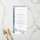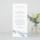 Den här elegantens sommardesign för moderna badplatser vid stranden, minimalistiska kustnära förlovningsfester eller chic vid repetitionsmiddagar vid sidan om har en skola med blå vattenfärgsfisk som simmar längs grund. Anpassa med två linjer anpassningsbar text i klassiskt blått tecken, med menyalternativen under.