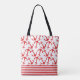 Stilfullt och trendigt, röda ankare och randiga mönster med hörnmonogram, totebag.