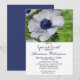Ha en elegant middag med denna inbjudande och vackra vita Anemone-blomma med rika mörkblå och lila centra. En unik inbjudan för examina, födelsedagar, årsdagar, bröllops- eller baby shower, pensioneringar eller återträffar - bilder från designerns ursprungliga akvarellmålning. Hela inbjudan kan anpassas eller modifieras för att passa dig genom att klicka på "anpassa"-knappen och följa rutorna. Ha kul när du skapar din egen specifika festinformation och om du behöver hjälp, tveka inte att kontakta mig. Det finns också matchande anpassningsbara festtillbehör i denna butik.