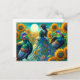 Elegant kvinna, kalkon och solrosor helg vykort