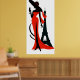 Elegant kvinnlig silhuette röd klänning med vinegl poster