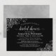 Detta vackra inbjudningskort för möhippan är både enkelt och elegant. Den har gammalmanuskalligrafi på en klassisk svart bakgrund med lacy silver faux foil i hörnen. Den har information både om duschen och om OSA och register. Perfektens sätt att fira bruden att vara i stil!