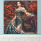 Elegant Lady in Floral Dress Amidst Red Poppies Canvastryck