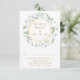 Med en dekorativ lagerkrans som omsluter en falsk guldbladsram. Detta stilrena botaniska svarsbrev kan anpassas med din speciella svarsinfo och de lyckliga parets namn på baksidan. Perfekt för bröllop, förlovningsfester, årsdagsfiranden och andra speciella evenemang under året! Designad av Thisisnotme