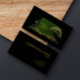 Skapa ett unikt sofistikerat intryck med detta eleganta botaniska visitkort. Designen har en dramatisk, helsvart bakgrund som skapar en slående högkontrastduk. Längs den nedre kanten vecklar sig ett miniatyrlandskap med frodig grön undervegetation med detaljerade ormbunkar och små gula och röda vilda blommor. Ett vackert återgivet, lövrikt grönt träd står framträdande till höger, balanserat av en mindre buske till vänster. Denna utsökta naturscen ger en sofistikerad grund för det centrala elementet: en ren, mörkgrön fyrkantig panel, perfekt centrerad och innesluten av en minimalistisk, tunn guldbård, som erbjuder ett förfinat utrymme för dina professionella detaljer. En liten fjäril tillför en subtil, lekfull touch. Dessa visitkort är idealiska för proffs som är knutna till naturen, design eller naturvård, såsom landskapsarkitekter, miljö konsulter, naturfotografer, boutique plantskolor eller trädgårdscenter, parkvårdsgrupper eller miljövänliga varumärken. Denna mångsidiga design