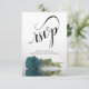 Dessa vackra RSVP-kort gör det enkelt för dina gäster att svara på din bröllopsinbjudan. De har en elegant design med prydlig, versal kalligrafi och en ensam långstjälkad teal-, turkos- eller blågrön färgad ros som speglas i en vattenyta med vågor och ringar. Baksidan av kortet är ett formulär som dina gäster fyller i och returnerar för att ange om de kan komma eller inte, hur många gäster de har med sig och deras val av måltid. Det finns också plats för en webbplats så att dina gäster kan svara online om det är mer praktiskt för dem.