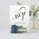 Dessa vackra RSVP-kort gör det enkelt för dina gäster att svara på din bröllopsinbjudan. De har en elegant design med fin skrivstil kalligrafi och en ensam långstjälkad dammig stålblå ros som reflekteras i en vattenyta med vågor och ringar. Baksidan av kortet är ett formulär som dina gäster fyller i och returnerar för att ange om de kan komma eller inte, hur många gäster de har med sig och deras val av måltider. Det finns också plats för en webbplats så att dina gäster kan svara online om det är mer praktiskt för dem.