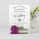 Denna fantastiska bröllopsinbjudan har en modern blomsterdesign med en enda långstjälkig cassis-lila, magenta, röd plommon eller bärfärgad ros som ligger på sidan och reflekteras i en pool med vågor och krusningar. Designen är enkel, elegant, romantisk och sofistikerad, med spetsig skriv kalligrafi och helt anpassningsbart innehåll.