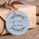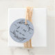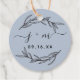 Dusty blue favärde med lagervärde löv, skript initialer och modernt datum.