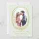 Den här rosan sparar datumet är perfekt för att meddela ditt kommande bröllop-datum. Utformningen har en antik lagerkrans ram runt förlovningens foto. Utformningen är på en ljust grönt dammbakgrund.