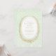 Den här gröntens bröllopsinbjudan är perfekt för en modern brud som uppskattar en vintage Fransk stil. Utformningen har en antik lagerkrans ram runt dina bröllop-detaljer. Utformningen är på en ljust grönt dammbakgrund.