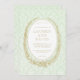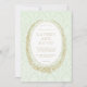 Den här gröntens bröllopsinbjudan är perfekt för en modern brud som uppskattar en vintage Fransk stil. Utformningen har en antik lagerkrans ram runt dina bröllop-detaljer. Utformningen är på en ljust grönt dammbakgrund.