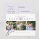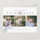 Elegant och rustik akvarell lavendel med 3 fotokollage i horisontellt format, typografi i dammig lila spara datum postkort.