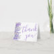 Elegant akvarell lavendelblomma tackkort. Detta vackra kort har akvarell lavendelstjälkar som kaskaderar ner på vänster sida, med "Tack" som visas på höger sida i elegant typsnitts typografi i kombination med klassiska serif-typsnitt. Inuti finns en anpassningsbar anteckning som du kan anpassa eller ta bort om du hellre vill skriva ditt eget meddelande för hand. De livliga lila nyanserna och gröna bladen ger en fräsch, modern touch. Du kan också anpassa typsnittsfärger och bakgrunder för att passa din stil.