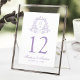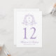 Ange en mjuk, romantisk ton vid bröllop med de här bordsnumren för lavender blommigt-vapensköld, med parets initialer kapslade i en elegant lavender-vapensköld. Bordsnumret presenteras i mitten, med parets namn och datum i blomning under kalligrafi - perfekt för lavender bröllop, källtider eller trädgårdsevenemang. Kortet mäter 5" x 7". Redigera varje bordsnummer individuellt och lägg till dem i kundvagnen för att säkerställa en mjuk beställning processaa.