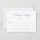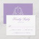 Förbättra elegansen i din bröllop-svit med OSA kort för lavender blommigt. Med mjuk lavender-kalligrafi på en skarp vit bakgrund kan den här utformningen vara personlig med önskat datum för OSA och svarstext. På baksidan visar en lavendel bakgrund en känslig vit botanisk vapensköld som omger parets monogram, med namn och bröllop-datum elegant visade i vit kalligrafi. En perfekt som passar för romantiskt, vår eller pastellinspirerat bröllop.