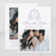 Elegant Lavender Blommigt Vapensköld Photo Bröllop Spara Datumet
